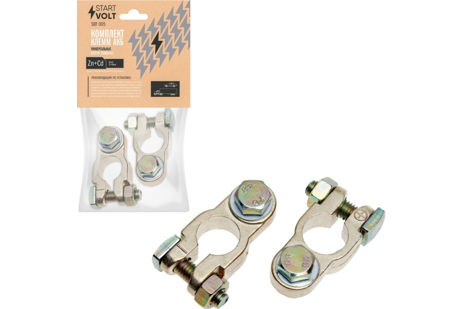 Клемма АКБ цинк 123мм под болт М8 SBT 012 2шт — технические характеристики