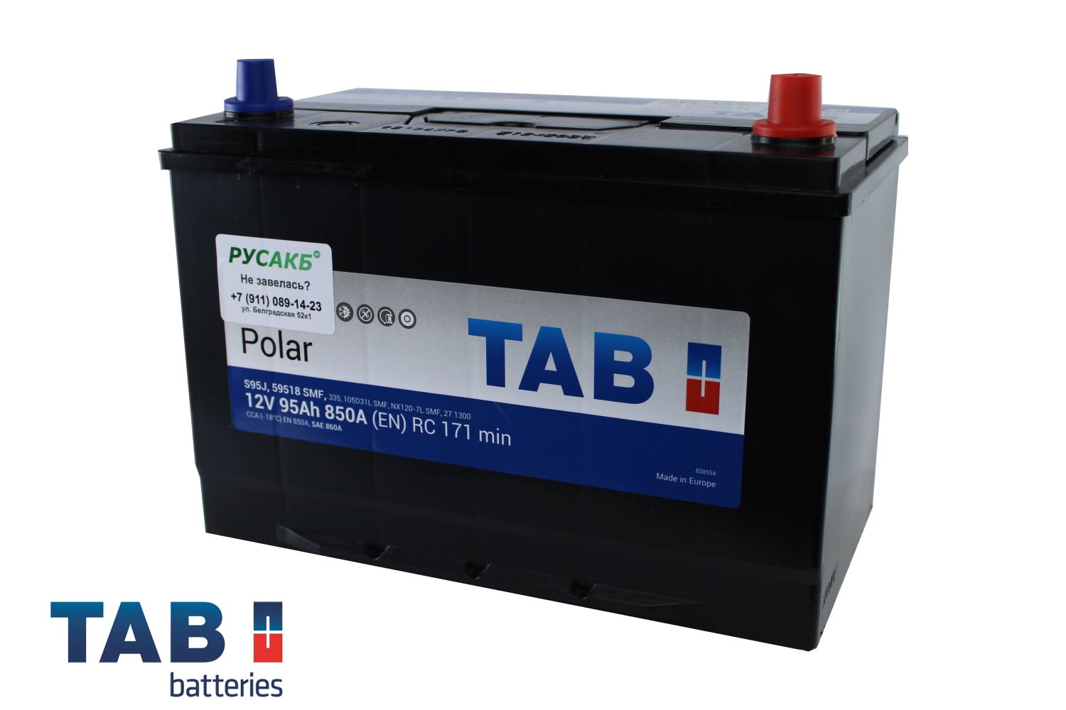 Аккумулятор TAB Polar 95.0 (59518) яп. ст/бортик — технические характеристики
