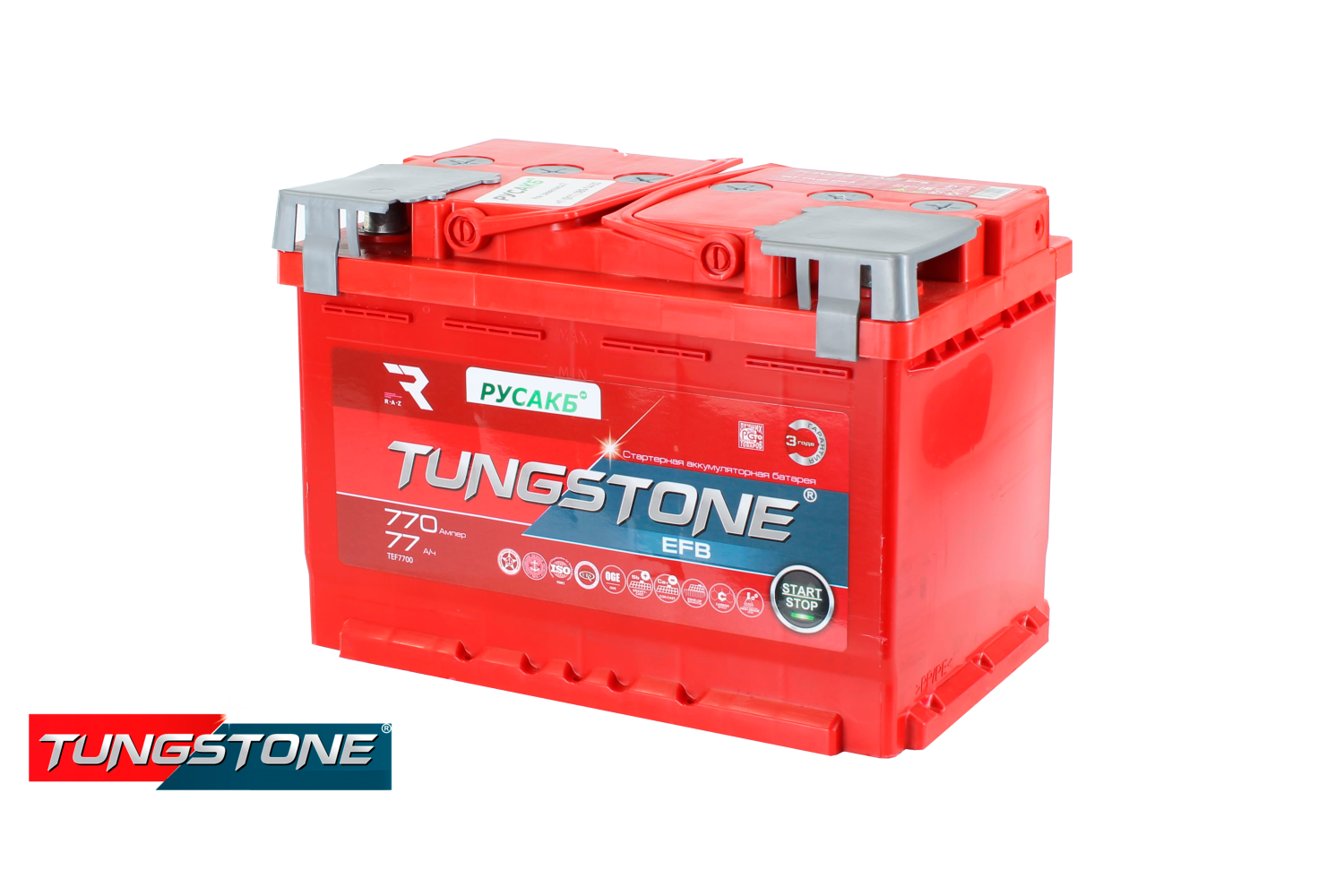 Аккумулятор произведен ООО «Рязанский аккумуляторный завод «Тангстоун» в России. Бренд TUNGSTONE EFB известен с 2004 года и специализируется на стартерных батареях для легковых и коммерческих автомобилей. Гарантия на аккумулятор составляет 36 месяцев с даты производства. Для получения консультации и подбора в СПб обращайтесь в наши магазины.
